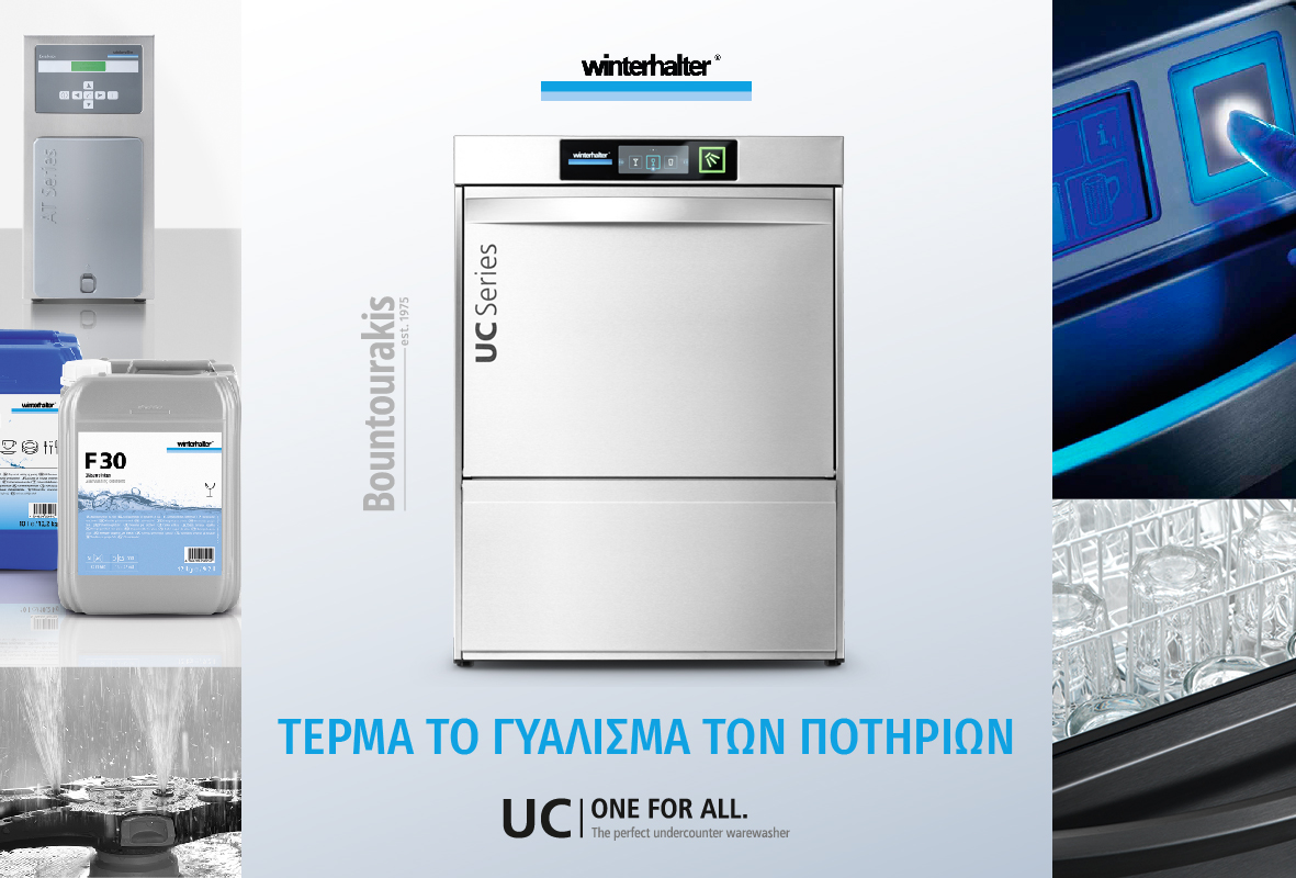 For sparkling glasses without pre-washing and polishing, try Winterhalter’s UC range of professional ware-washers in combination with water treatment systems and detergents!